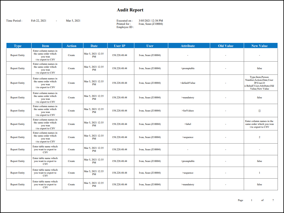 The Audit Report enables you to review system configuration changes made over a specific period of time. All Setup items can be audited in terms of when a change was made and who made the change.