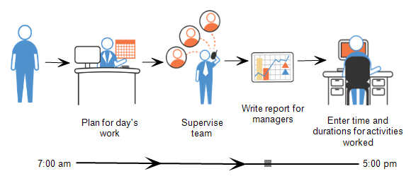 For example, an employee who tracks his time using activity durations might do the following at the end of the work day: